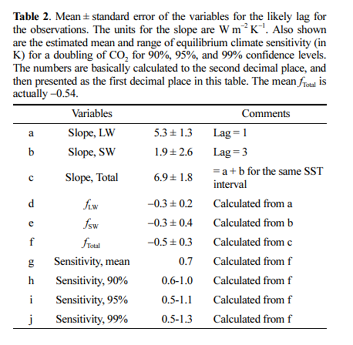 Mörner hänvisar i sitt inlägg sällan till specifika studier men när han för en gångs skull gör det så är det till en av Lindzen och Choi från 2009 som blivit mycket omtalad. De kom fram till att klimatkänsligheten var ca 0,5°C och att elva klimatmodeller var helt fel ute.
