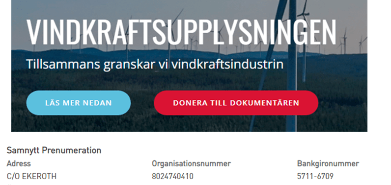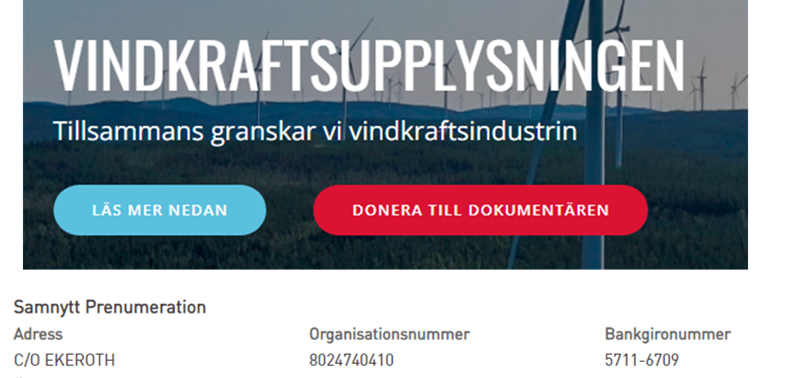 På Motvinds sida hittar man även en länk till vindkraftsupplysningen.se (tankarna går ju osökt till IPCC-dissande bloggen Klimatupplysningen…) Där uppmanas man att donera pengar till att göra en dokumentärfilm som granskar vindindustrin: