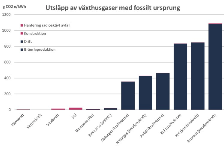 De beskriver hur våldsamt mycket mer koldioxid vind- och solkraft släpper ut jämfört med kärnkraft och hänvisar till Vattenfalls livscykelberäkningar. Vattenfall vill själva sansa diskussionen lite och påvisar att tekniska framsteg fått ner CO2-utsläppen ännu mer men kanske framförallt: skillnaden i alla dessa energislag är enorma gentemot de fossila: