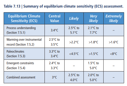 (”It is virtually certain that ECS is larger than 1.5°C.´[…] but currently it is not possible to rule out ECS values above 5°C”).