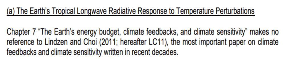 Förvillarnätverket Clintel kritiserade som sagt IPCC-rapporten för att ignorera en viktig studie av Lindzen och Choi från 2011 (LC11). Enligt Clintel presenteras där signifikanta bevis för en klimatkänslighet som till och med understiger 1°C (värt att notera: vi har ganska nyligen kommit drygt halvvägs till en fördubbling av CO2-halten som gett en temperaturökning på strax över 1°C, dvs om LC11:s resultat ska stämma får det inte ske någon mer uppvärmning (snarare en nedkylning) fram till ca 2060…):