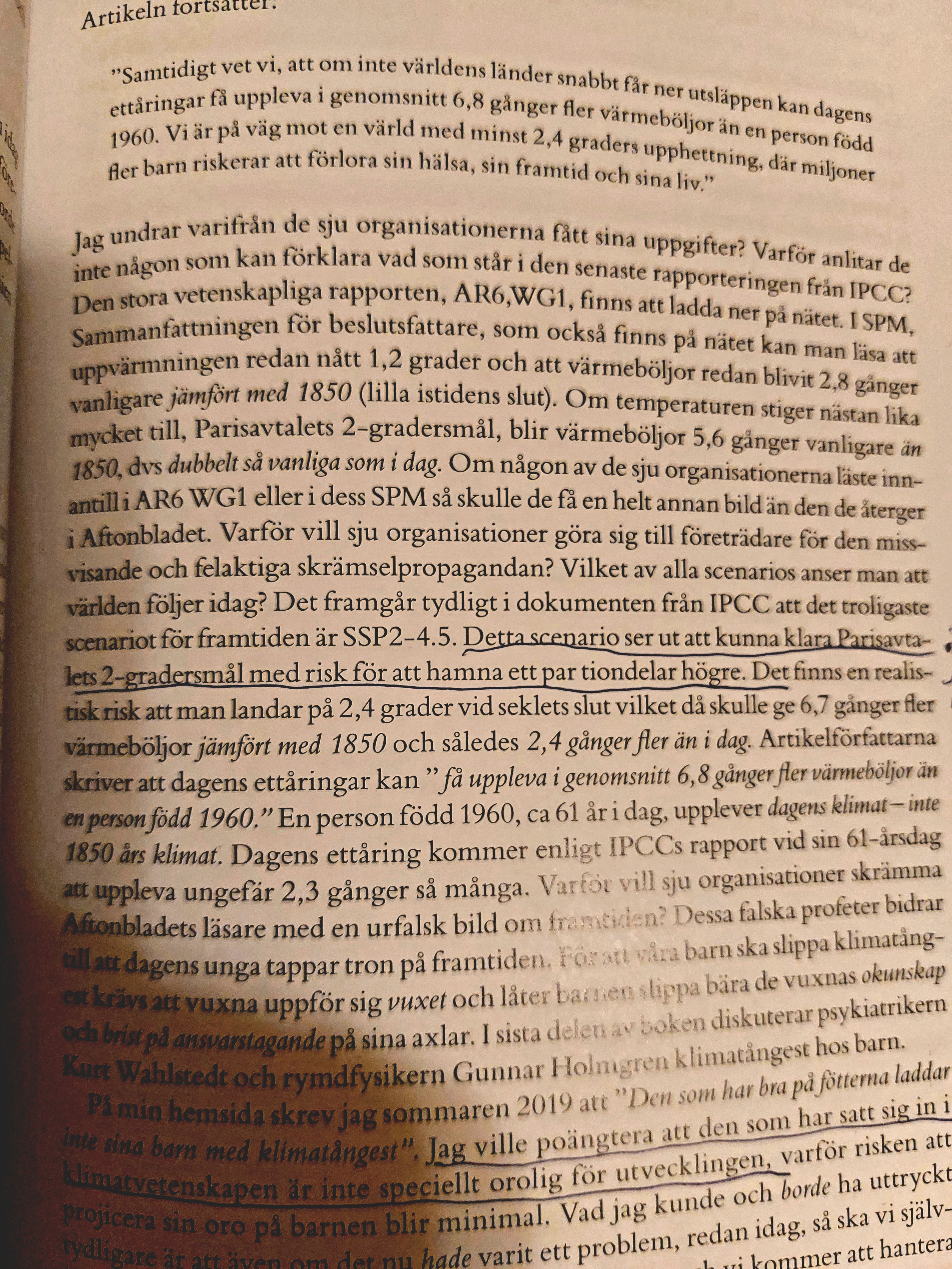 Ja, hon påstår detta mer än en gång i boken (jag har t o m gett sidhänvisningar i mitt blogginlägg) och ja, jag står fullt ut för att det inte finns något bättre ord än förnekelse om man år 2022 hävdar att ingen sakkunnig är särskilt orolig.]