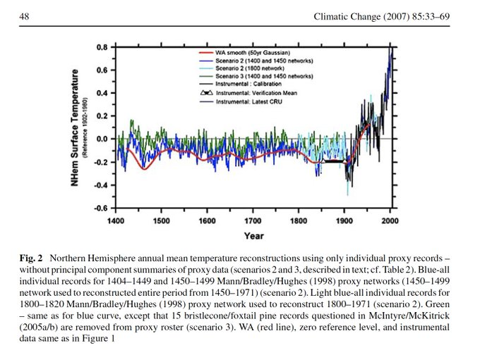 • Wahl, E.R., Ammann, C.M. Robustness of the Mann, Bradley, Hughes reconstruction of Northern Hemisphere surface temperatures: Examination of criticisms based on the nature and processing of proxy climate evidence. Climatic Change 85, 33–69 (2007). https://doi.org/10.1007/s10584-006-9105-7