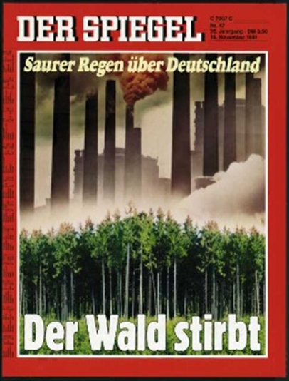 Den sextonde november 1981 prydde den tyska tidningen Der Spiegel sitt omslag med bilder på barrskog insvept i industrirök. Krigsrubriker förkunnade: Det finns något i luften och Skogen dör. Det kom sig av siffror från tyska myndigheter som sa att femtio procent av Tysklands skogsareal var död eller skadad. Även i Sverige fanns stora ytor med död skog, framförallt i de södra delarna.