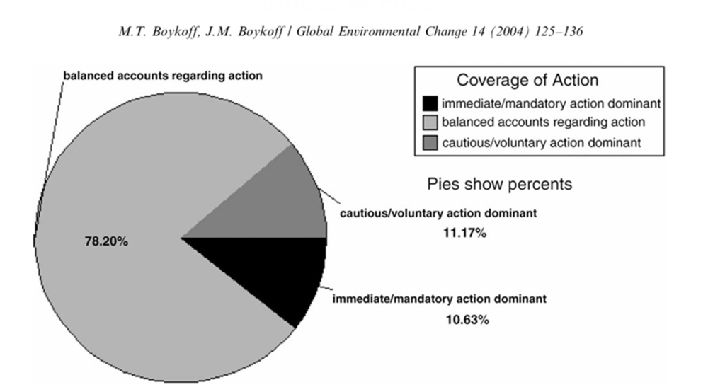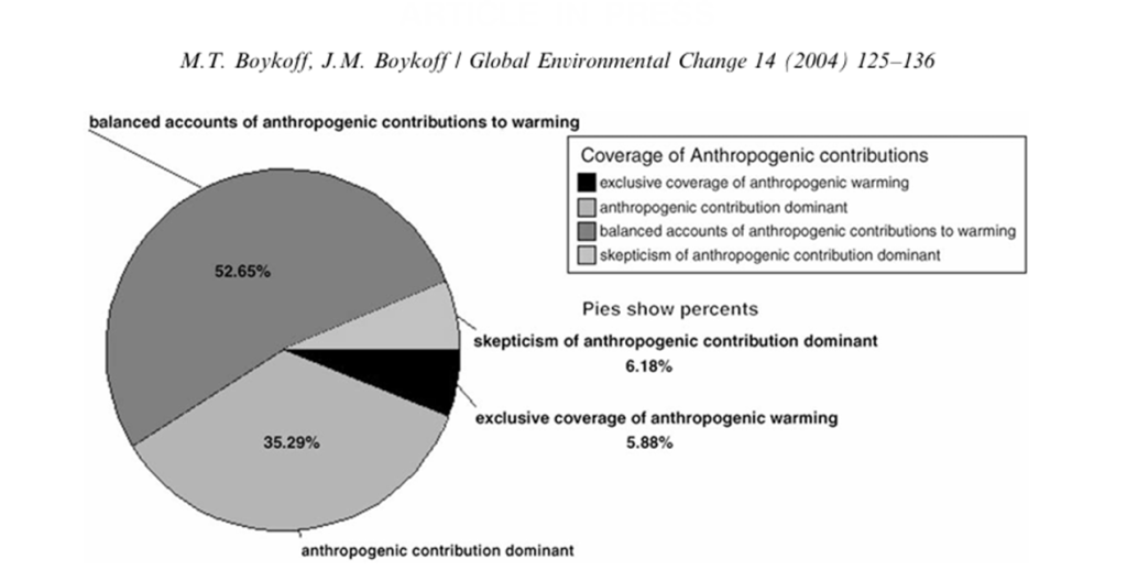 En studie tittade på hur New York Times, Washington Post, Los Angeles Times och Wall Street Journal rapporterade om klimatet mellan 1988-2002.