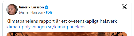 För info har denne Larsson inga problem att sprida bloggen Klimatupplysningens bisarra kritik av senaste IPCC-rapporten vidare: