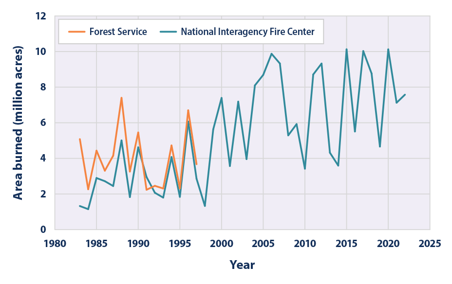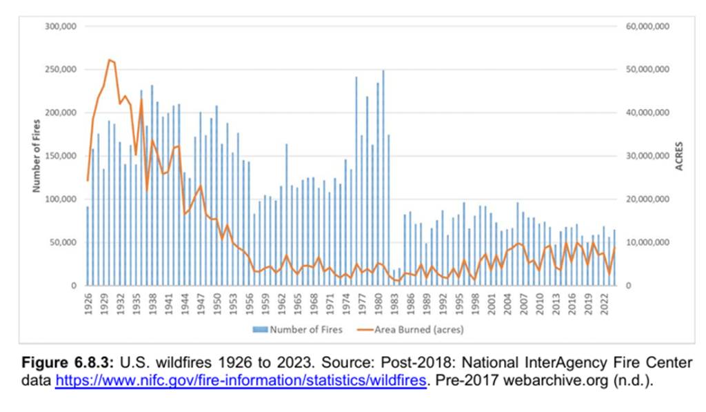 De har även tagit med en graf över bränder i USA som går tillbaka till 1920-talet med en kommentar att National Interagency Fire Centre (NIFC) tagit bort denna informationen från sin webbsida då tidiga data inte kan jämföras med ny data. Författarna struntar i detta och tar med den ändå.