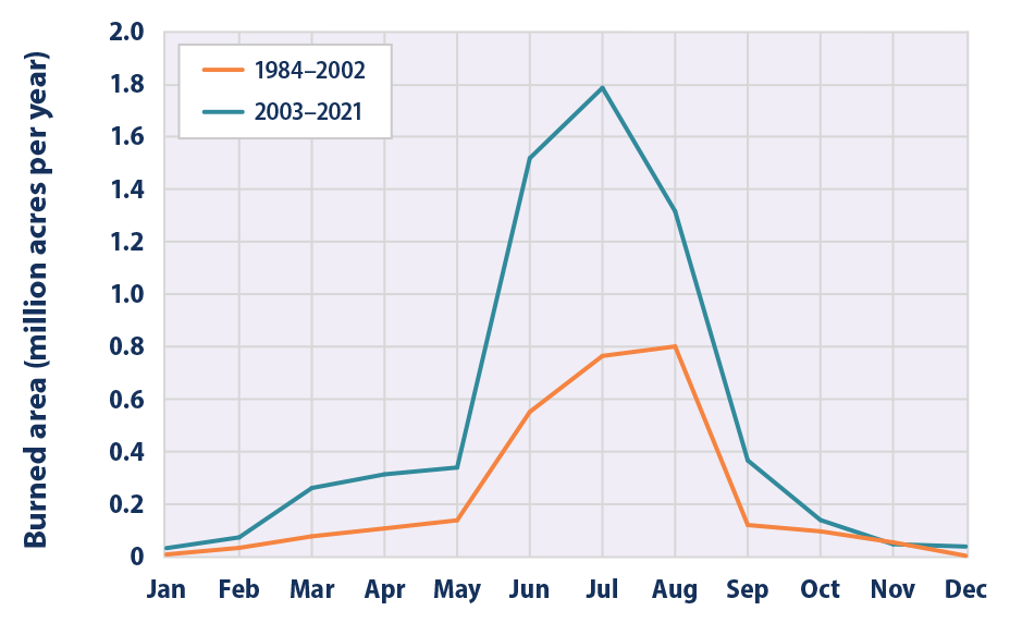 Författarna skriver sen att även om man bara använder data från 1985 och framåt så ökade bränderna men bara fram till 2007. De brukar ständigt påtala vikten av långa mätserier för att kunna dra slutsatser men här gäller det tydligen inte. De gör ingen statistisk analys utan går på ögonmått. På EPA:s hemsida finns ett antal grafer de hade kunnat visa men som de ignorerat: