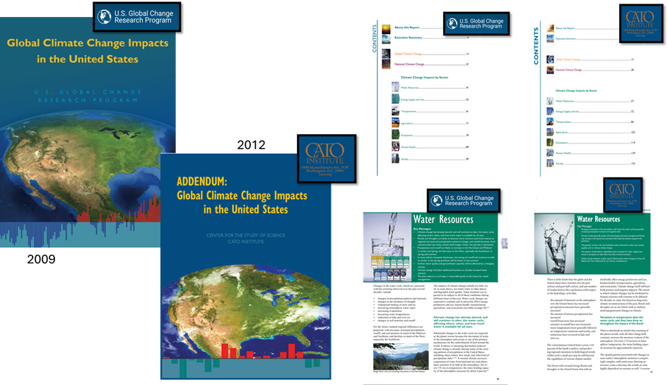 2009 kom andra NCA-rapporten. Tre år senare gav Cato Institute (drivet av Patrick Michaels) en rapport med namnet Addendum som utseendemässigt var identisk med originalet. Slutsatserna var dock raka motsatsen till dem i NCA:n…
