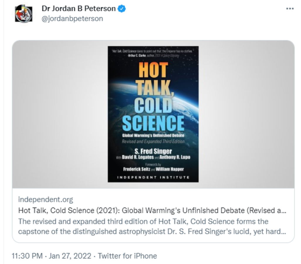 Här ett avsnitt från när Jordan Peterson samtalar med mr Brexit Nigel Farage. De accepterar inte ens IPCC:s mest säkerställda slutsatser.