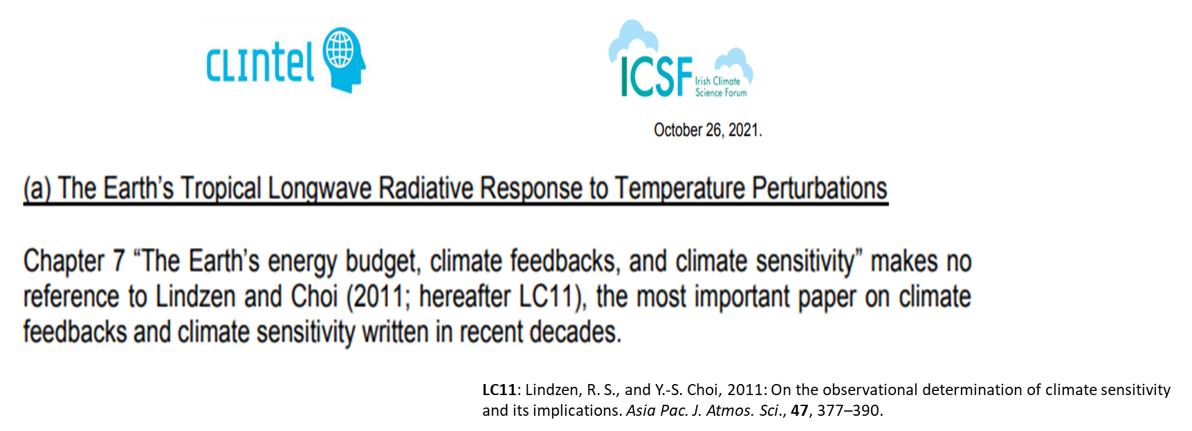 Förvillargruppen Clintel menar att IPCC ignorerat Lindzens studie från 2011 (nedan från kritik mot IPCC:s senaste rapport AR6 WG1):