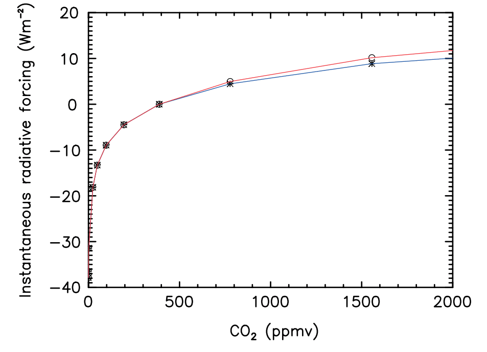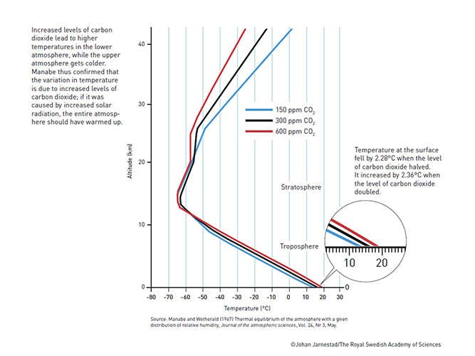 Redan 1967 beskrev Nobelpristagaren Manabe att uppvärmningen från en ökad CO2-halt var logaritmisk och att effekten av en ökad CO2-halt skulle leda till