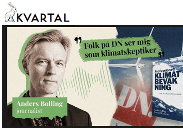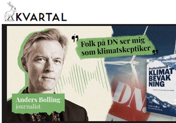 Anders Bolling och Svenolof Karlsson har nyligen gett ut en bok med titeln Professionell klimatbevakning : guide för en konstruktiv journalistik. De anser att mainstream media har antagit ”den alarmistiska synvinkeln” utan att applicera sund journalistisk skepticism och därför inte ger hela bilden. Med anledning av boksläppet har nättidningen Kvartal intervjuat Bolling. Och efter önskemål har jag beställt boken och får väl återkomma om med recension, men nedan följer några kommentarer om intervjun i Kvartal, för det verkar som att Bolling fått en del om bakfoten…
