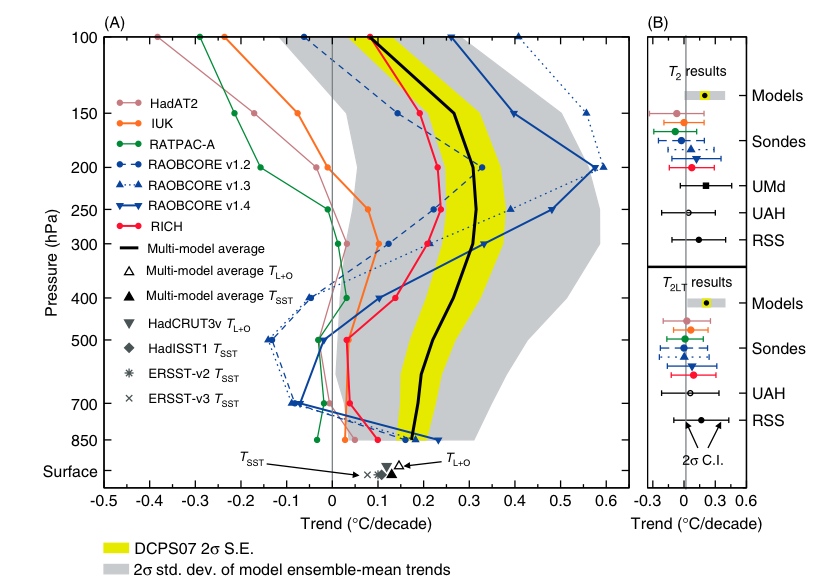 [ii] Santer, B.D.; Thorne, P.W.; Haimberger, L.; Taylor, K.E.; Wigley, T.M.L.; Lanzante, J.R.; Solomon, S.; Free, M.; Gleckler, P.J.; Jones, P.D.; Karl, T.R.; Klein, S.A.; Mears, C.; Nychka, D.; Schmidt, G.A.; Sherwood, S.C.; Wentz, F.J. Consistency of modelled and observed temperature trends in the tropical troposphere. Int. J. Climatol. 2008, doi:1002/joc.1756