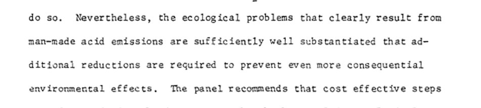 ”Freonförbudet, som infördes för att skydda ozonlagret, är ett sådant. Förbud mot användning av farliga ämnen som kvicksilver, PCB, DDT och bly har lett till betydande miljöförbättringar utan att vara särskilt kostsamt. På liknande sätt ledde förbudet mot bly i bensin till en drastisk minskning av blyutsläpp, med 95 procent i södra och mellersta Sverige sedan 1970-talet.”