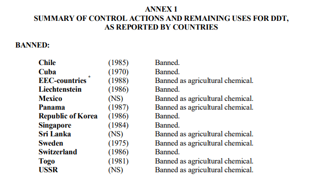 Men som så alltid, anledningen till att kampanjerna är så effektiva är att det oftast finns korn av sanning i det hela. Visst fanns det miljöorganisationer som ville se totalförbud mot DDT även om ett sådant inte funnits (WHO inkluderar sen 2006 även DDT för malariabekämpning och mig veterligt säger inga större miljöorganisationer emot).