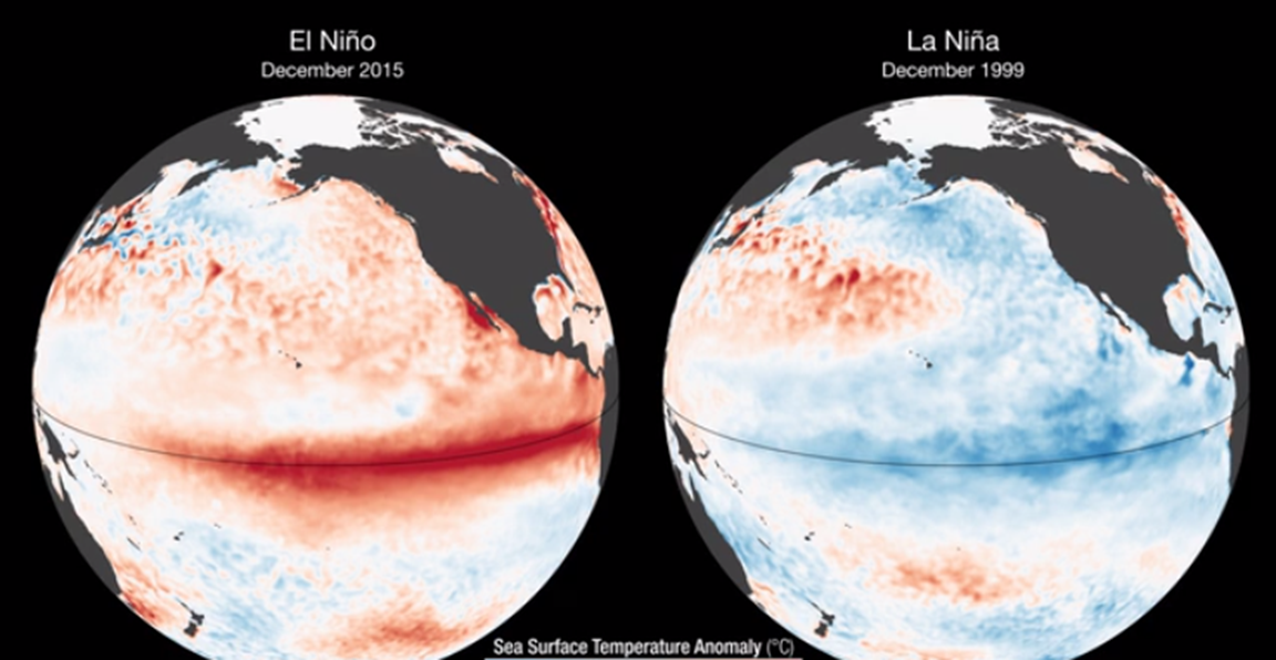 Den enskilt största faktorn till att vi ser stora variationer i den globala medeltemperaturen från ett år till ett annat är väderfenomenet ENSO (El Niño–Southern Oscillation). Enkelt uttryckt handlar det om att tropiska havsströmmar och passadvindar ändras och i den varma fasen (El Niño) förs energi från haven upp i atmosfären och i den kalla fasen (La Niña) förs energi ner i havet. Yttemperaturen i Stilla Havet visar tydligt skillnaden mellan de båda faserna: