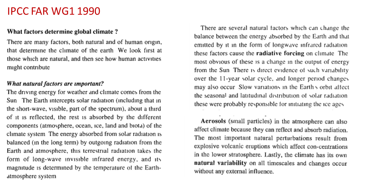 I inledningen kommenteras att IPCC:s uppdrag varit att bevisa koldioxidhypotesen, ”dvs.attklimatförändringar primärt drivs av människans utsläpp av CO2. Detta har man också försökt att leda i bevis, utan att lyckas.”