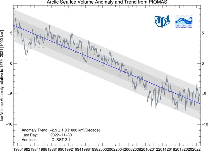 I samma Kvartalartikel: ”Och BBC förutspådde till exempel 2007 ett isfritt Arktis redan 2013, vilket förstås inte slagit in.”