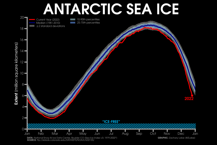 Förhållandena runt Antarktis är också speciella med avseende på havsströmmar och vindar som i hög grad ”isolerar” kontinenten, åtminstone på vintern (vilket också gör att ozonlagret påverkas extra hårt av freoner här). Det är också området runt Antarktis som är minst utforskat och har dåligt med långa och heltäckande mätserier. Och det skiljer en del mellan dem.