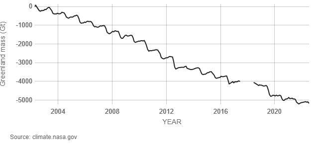 Återigen blir hennes svar ”Jag är dock tydlig med att jag bara använder den för att visa den långsiktiga trenden. Jag säger att data är kontroversiella.” Nej, de är inte ”kontroversiella”, de går helt enkelt inte använda för att ”visa den långsiktiga trenden” på en global nivå. Nej inte ens för Grönland som helhet. Och pilen på nutida temperatur är helt felaktig, det duger inte att säga ”men jag sa ju att det var kontroversiellt”. Vill man vara seriös finns det korrekt data att använda istället för att slänga in första bästa graf man hittar på nätet.