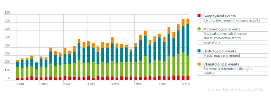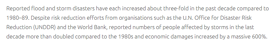 ”From 2007 to 2016, EM-DAT recorded an average of 306 weather-related disasters per year, an increase of 46% from the 1990–99 average.”