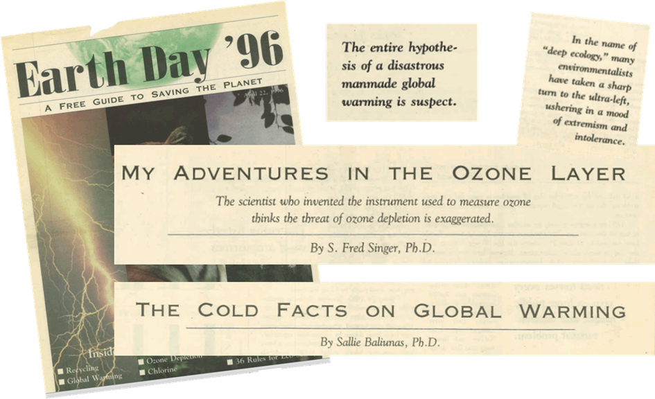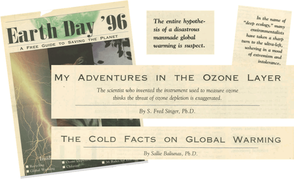 På Earth Day 1996 försåg Nätverket amerikanska studenter med en gratistidning där de kunde läsa att det inte fanns vetenskapligt stöd för att surt regn, freoner, avskogning eller klimatförändringar innebar några problem för världen. Och det i sammanhanget obligatoriska mantrat om kostnadseffektivitet: vi vet för lite, vi måste forska mer innan vi agerar. En av skribenterna var fysikern Fred Singer.