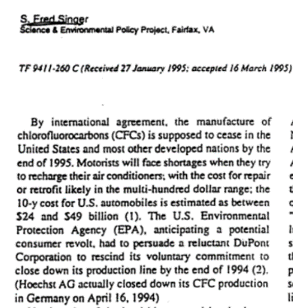 Stora delar av Nätverket accepterade nämligen inte att utsläppen av växthusgaser utgjorde ett problem. Detsamma gällde utsläppen av freoner. Nämnda Fred Singer och representanter för Nätverket satt i amerikanska kongressförhör och motsatte sig en snabb utfasning av freoner även långt efter det att tillverkningsindustrin var med på tåget.
