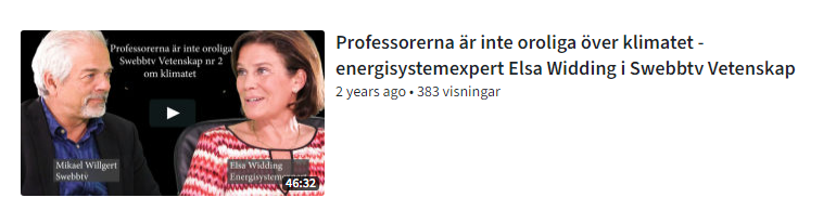Jag blev tillfrågad om jag ville recensera Elsa Widdings (EW) nya ”klimatbok” Sunt förnuft om Energi & Klimat med underrubriken fakta och funderingar. Så blev det och den är nu publicerad i Göteborgs-Posten (8 januari). Tyvärr verkar artikeln vara låst.
