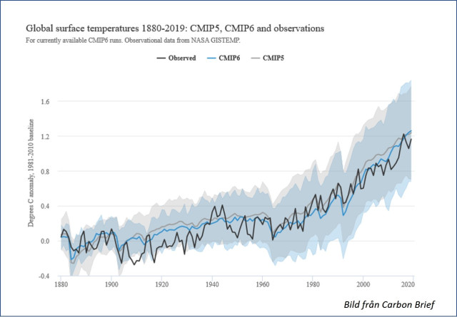 Kollar man på situationen för temperaturen vid jordytan ser modellernas förmåga ut så här: