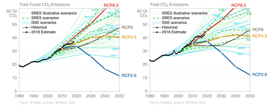 Här bild över utsläpp/markanvändning/RCP-projektioner. Från Carbon Brief.