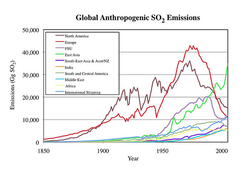 Från: “Anthropogenic Sulfur Dioxide Emissions:1850-2005” by S. J. Smith, et al.
