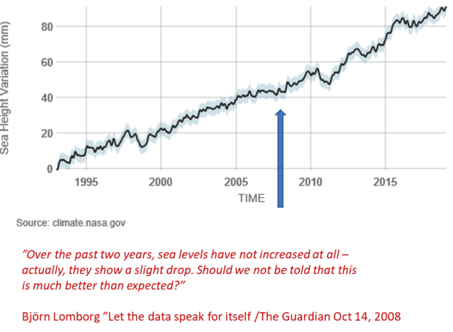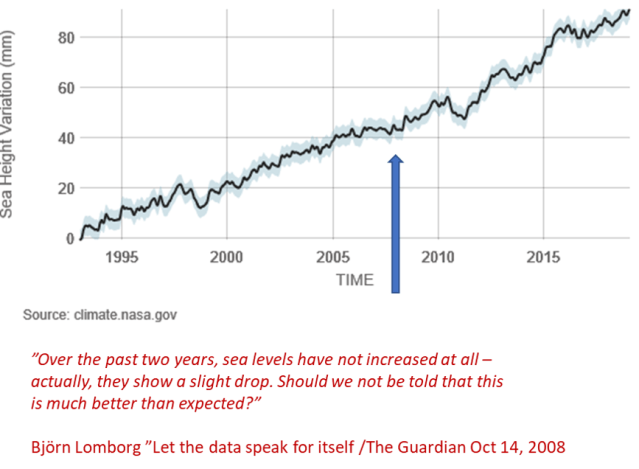 Lobbygruppen Näringslivets medieinstitut (NMI) lanserade en rapport på SvD:s ledarsida (var annars?) som sades visa hur alarmistiskt mainstream media rapporterade om havsnivåhöjningar: ”mediernas intresse för det värsta tänkbara utfallet dominerar”.