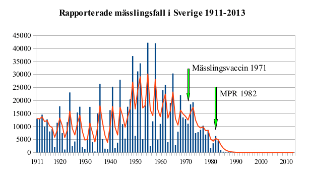 Läs mer på t ex Folkhälsomyndighetens sida istället för att läsa på obskyra bloggar. Mässlingsvirus har dessutom getts sedan 1982 i Sverige.